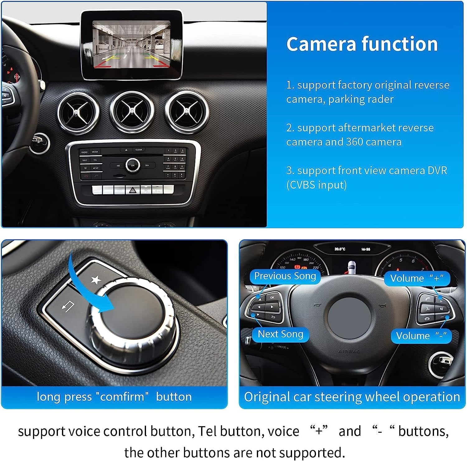 – Bilbakamera: Koble til ettermontert bakkamera med original skjerm, lar deg parkere sikkert. (Kamera ikke inkludert)