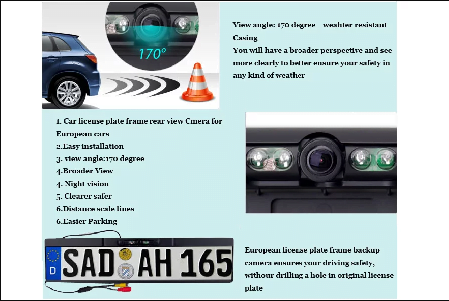 EU-nummerskilt bil ryggekamera 4 lysdioder for mørk synlighet